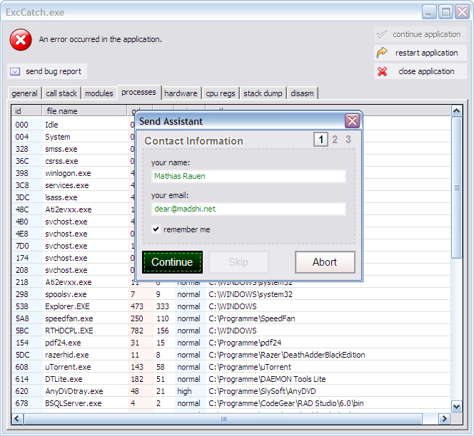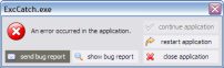 This screenshot shows how the madExcept exception window looks
